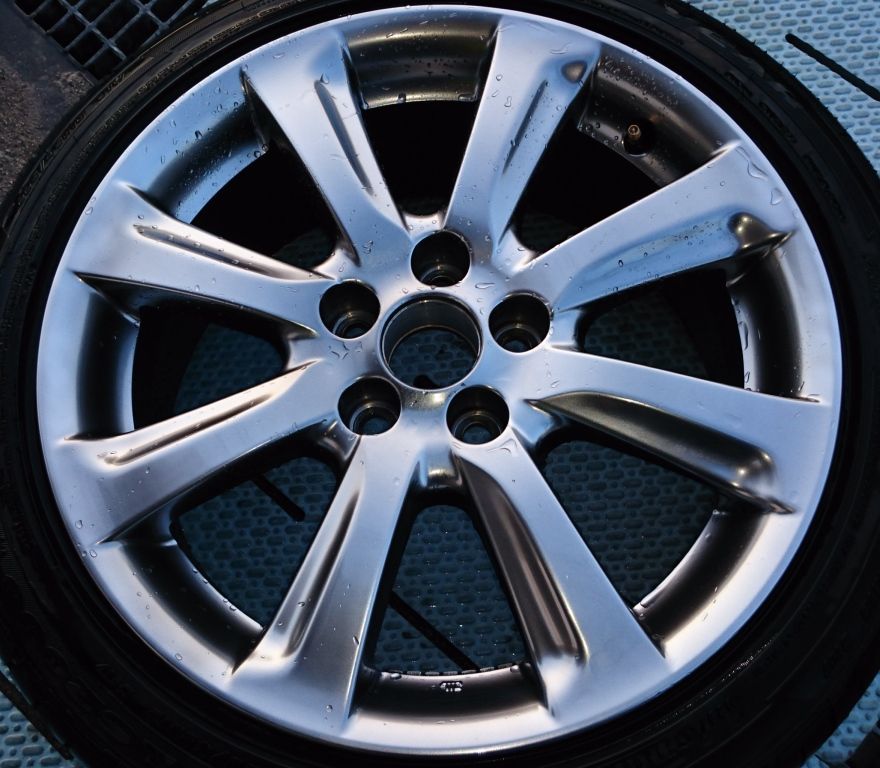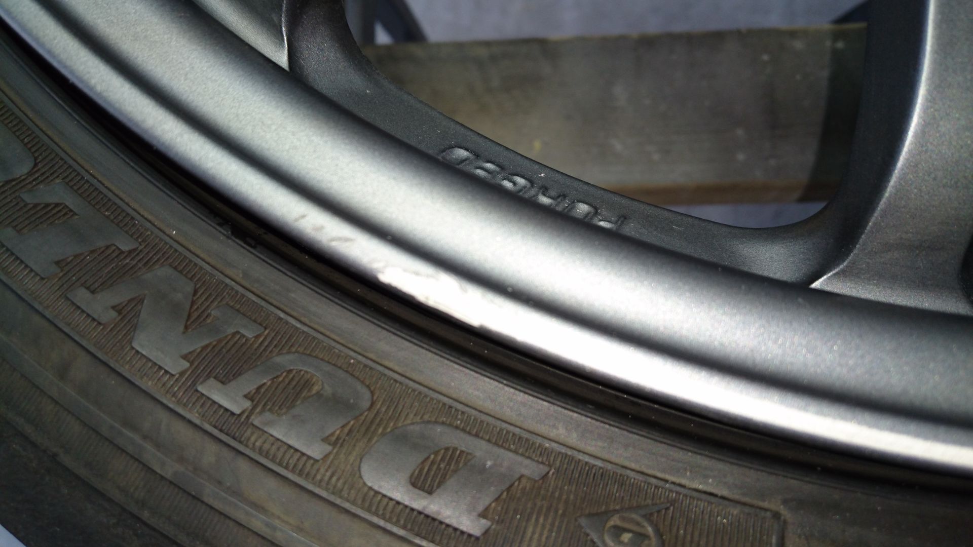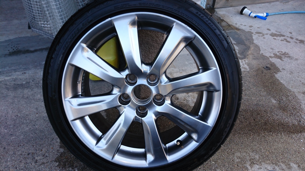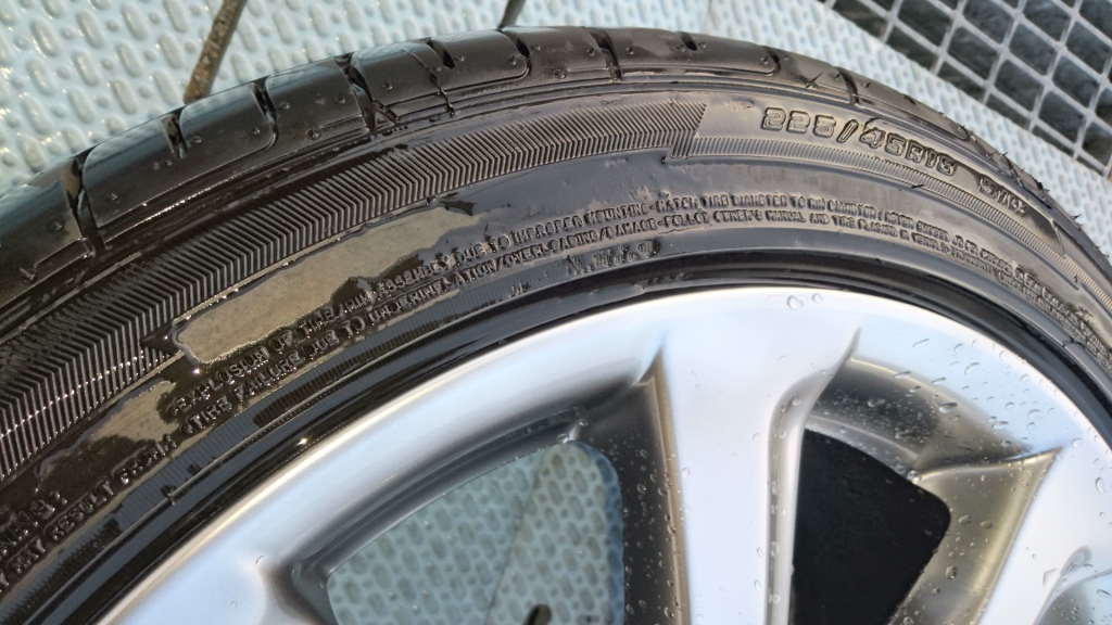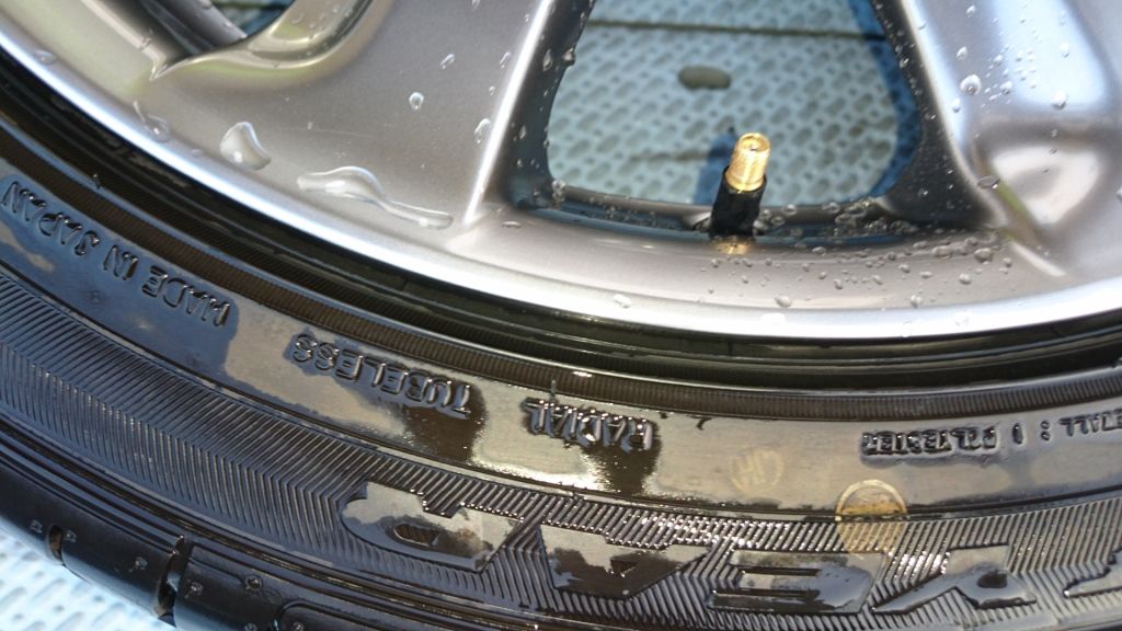 実は 数日前の施工で RAYS CE28 全艶消しガンメタのリム傷修理(これも部分補修)があったのですが 艶消し加減とガンメタの色合いを合わせる為、極力 狭い範囲だけの塗装で仕上げたので 施工前の洗浄はほどほどに (汚れの酷い物は一時間ほどかけて 念入りに 全体の傷を確認しながら洗浄します) 修理完了してから 念入り洗浄したのですが —-