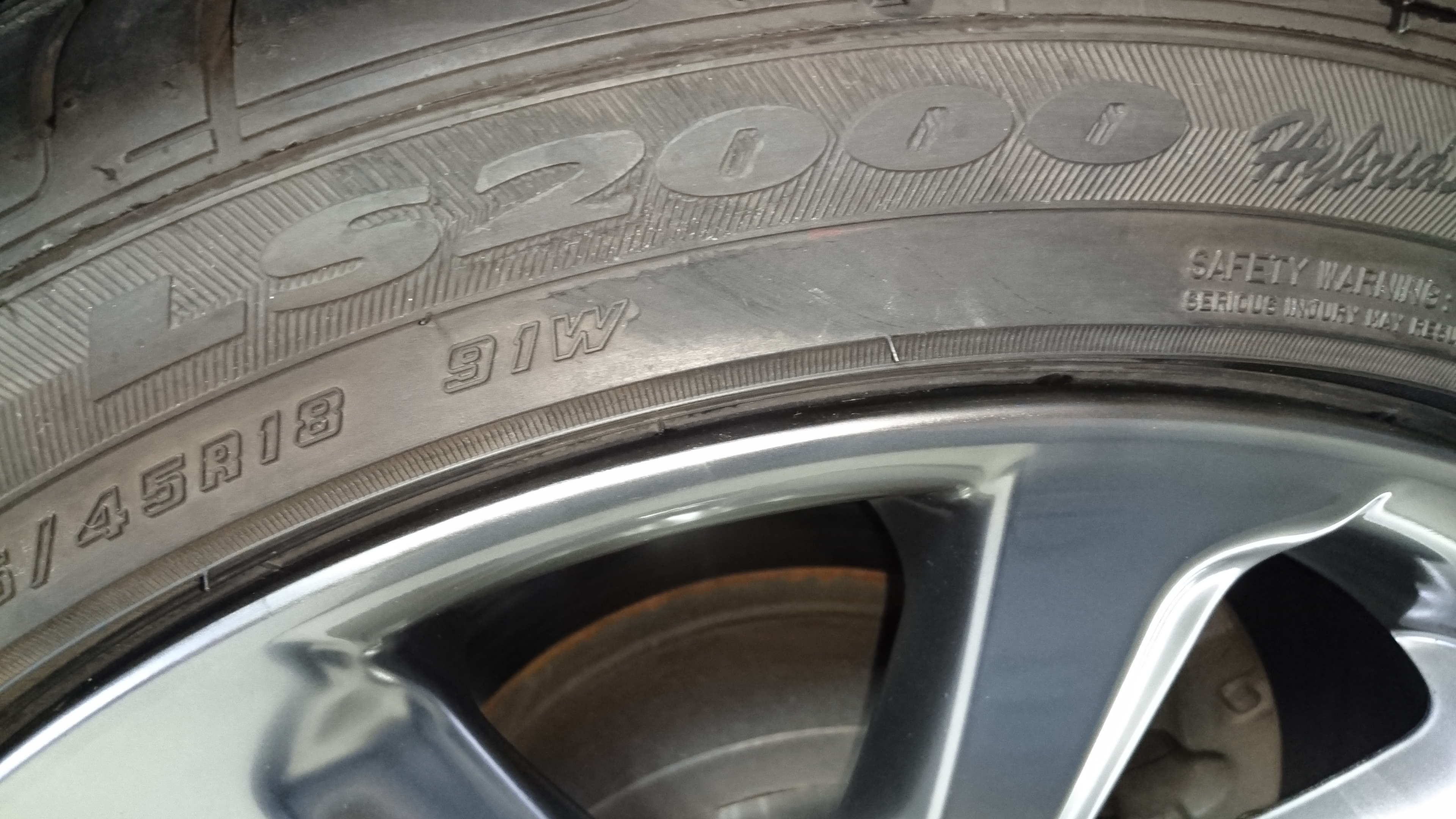 DUNLOPのロゴの Uから右方向へ約20数cm のガリ傷